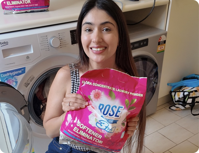 Use 1 scoop for regular loads or 1.5–2 scoops for heavily soiled clothes. ROSE works in front-load and top-load machines, performs well in cold, warm, or hot water, and is safe for everyday fabrics, towels, linens, and delicates.